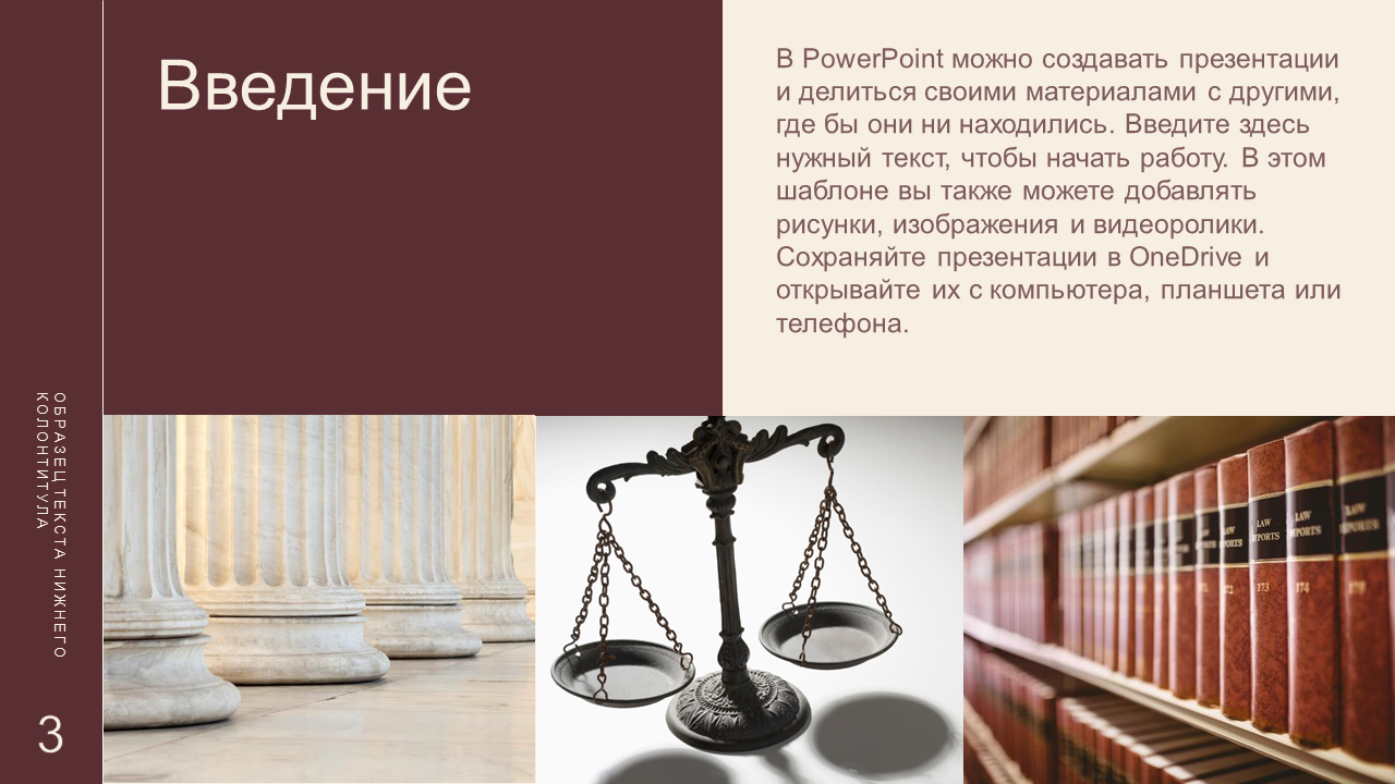 Шаблон презентаций PowerPoint — это полностью оформленная и отформатированная основа для вашего контента. Когда вы создаете презентацию, шаблон помогает обеспечить единообразный внешний вид и оформление слайдов. Этот шаблон содержит советы по дизайну PowerPoint и изображения юридической тематики. Это шаблон с поддержкой специальных возможностей.