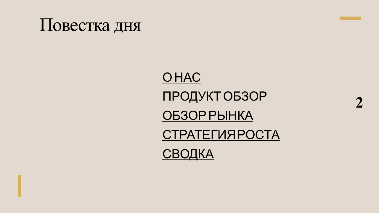 Поднимите свои бизнес-презентации на новый уровень с помощью шаблона PowerPoint, специально разработанного, чтобы ясно передавать информацию и производить впечатление на слушателей. В этом шаблоне предусмотрено оглавление для организации документа, временная шкала для отслеживания хода выполнения и таблицы для демонстрации данных. Это шаблон со специальными возможностями.