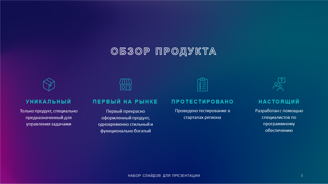 Используйте этот шаблон технологической презентации PowerPoint со специальными возможностями для создания презентаций по продажам, демонстраций продуктов и других презентаций для любого технологического предприятия. Воспользуйтесь этим шаблоном презентации PowerPoint и ваша технологическая презентация будет отлично выглядеть и подчеркнет ваши цели. Продемонстрируйте свою команду, финансовые показатели, бизнес-план и т. д. с помощью этого шаблона технологической презентации.